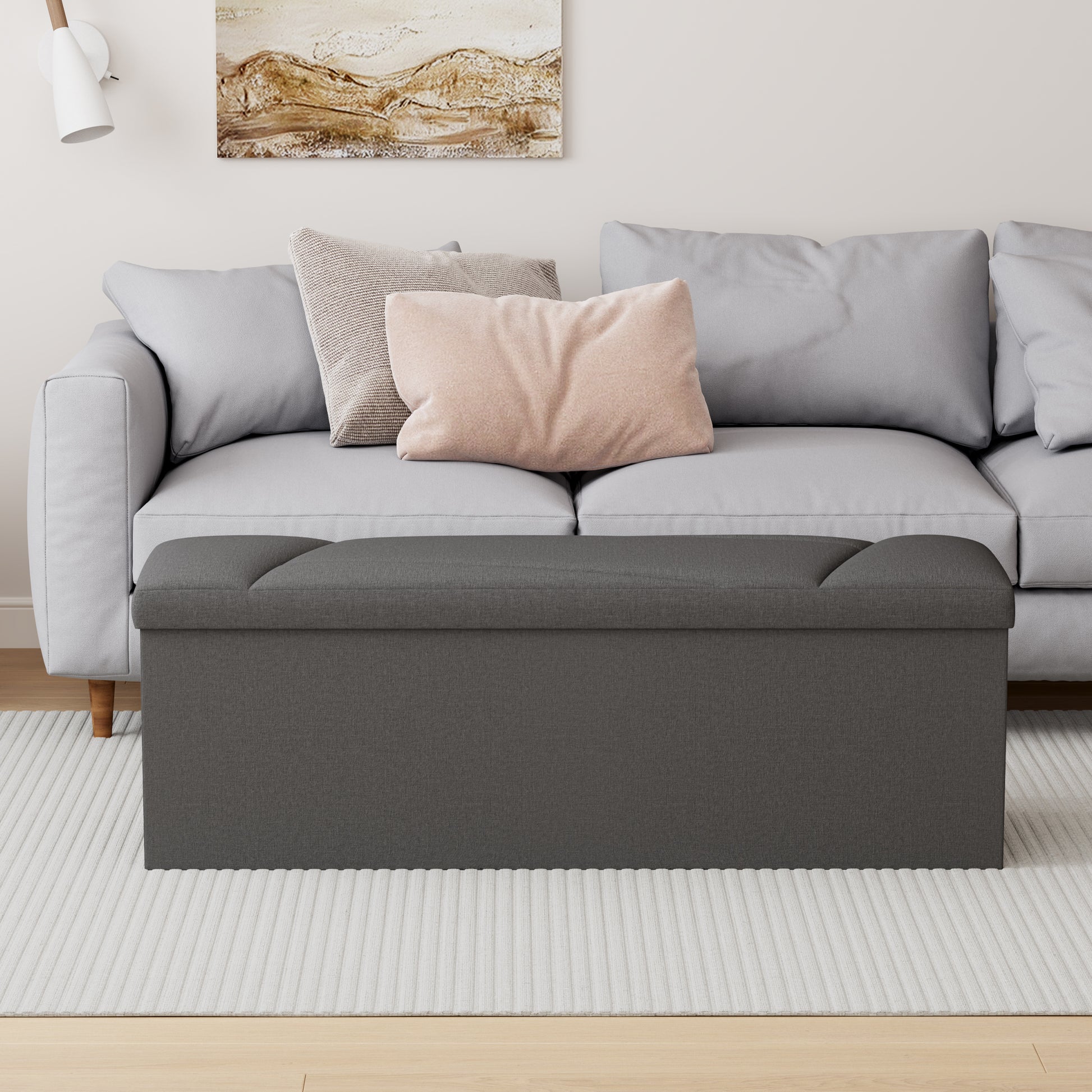 Ottoman with Storage, ZETDIY 43" Linen Ottoman Storage Bench with 660lb Capacity, Black