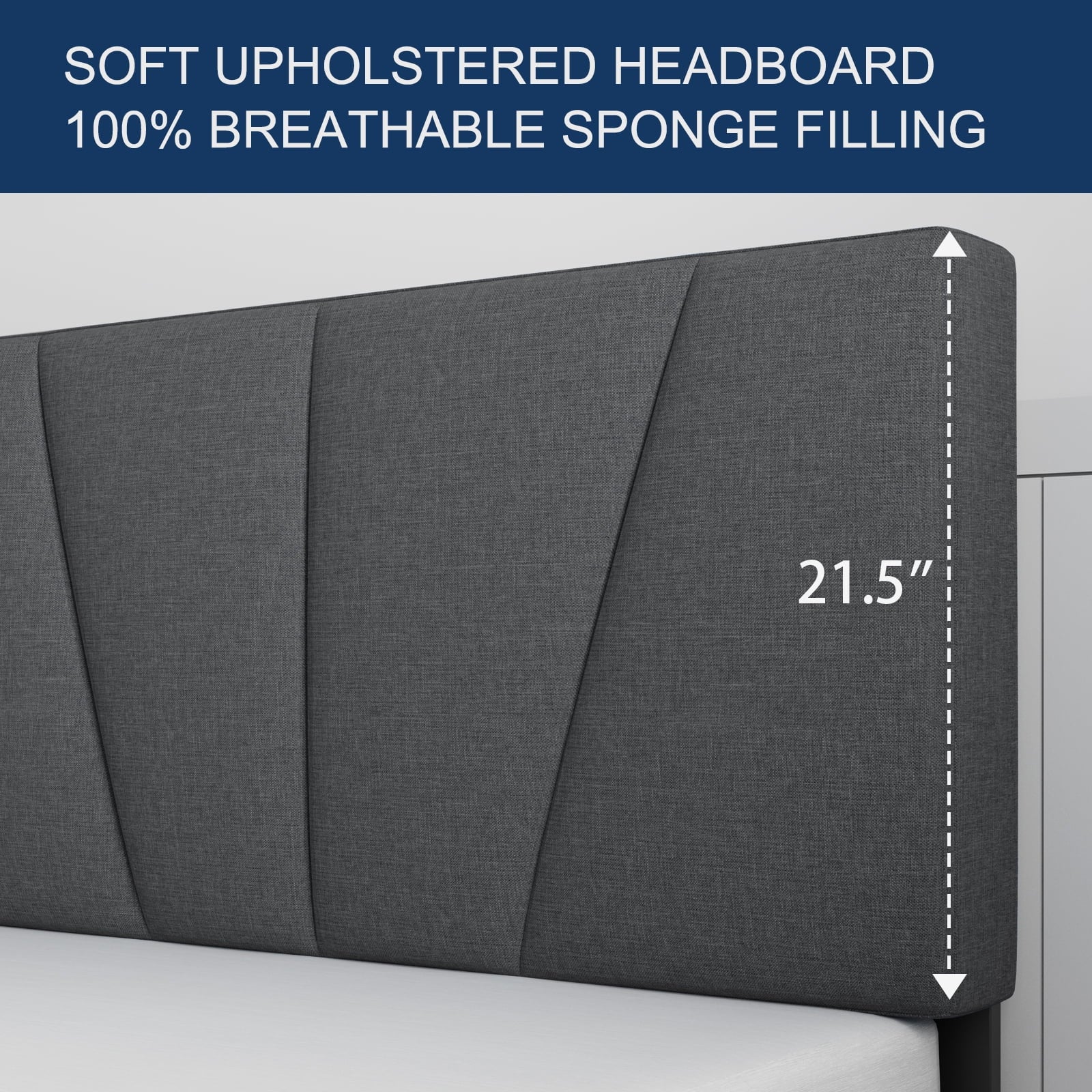 - Noiseless for Comfortable Sleep - King Size Upholstered Platform Bed Frame provides your family with a quite and comfortable sleep environment.Our platform bed frame with headboard is designed for noise-free use and no squeaking. The reinforced wood and metal structure of the bed frame Full made it completely silent and produces no crinkling sound.